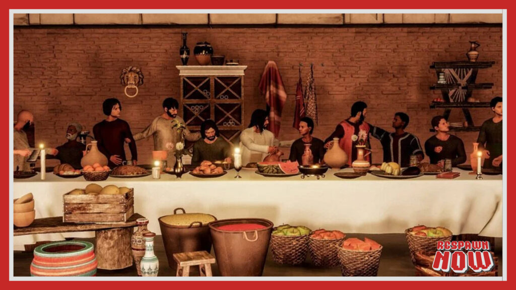 El juego salta entre escenas inspiradas en momentos bíblicos y propone pequeñas tareas, minijuegos y desplazamientos que no terminan de encajar ni con la magnitud del material ni con una lógica de diseño autónoma. El resultado es una experiencia donde lo sagrado no se vuelve jugable, sino doméstico en el peor sentido. No íntimo. No humano. Doméstico como cosa rebajada a tarea de trámite. Limpiar, cocinar, moverse sin demasiada dirección, activar objetos, soportar secuencias que piden acciones mecánicamente torpes y emocionalmente vacías.