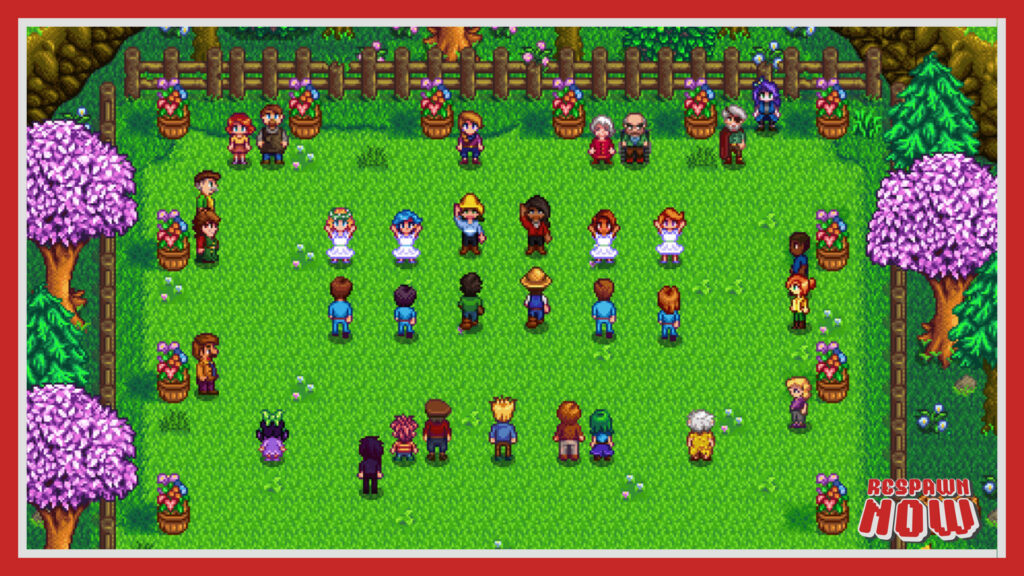 El otro gran sostén de Stardew Valley es su pueblo, y acá el juego juega una carta emocional con bastante oficio. Los habitantes tienen rutinas, se mueven, se cruzan, salen, trabajan, se reúnen. No es un mundo complejo en términos de simulación social, pero está lo suficientemente bien coreografiado como para que te sientas integrado. El pueblo se comporta como un organismo chico, con hábitos, con eventos, con pequeñas tradiciones.